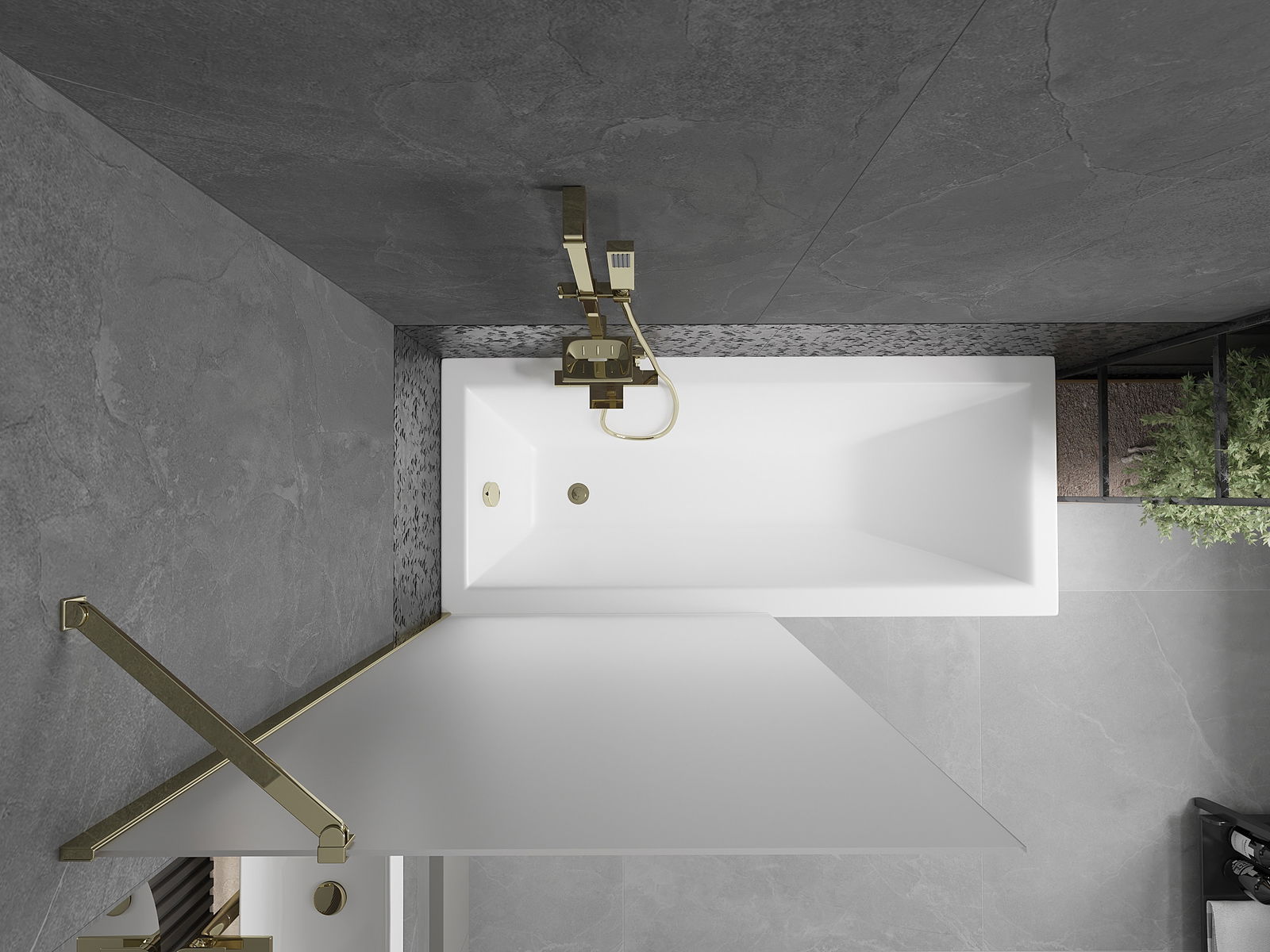 Mexen Next paroi de baignoire à 1 vantail 90 x 150 cm, givrée, dorée - 895-090-000-00-30-50