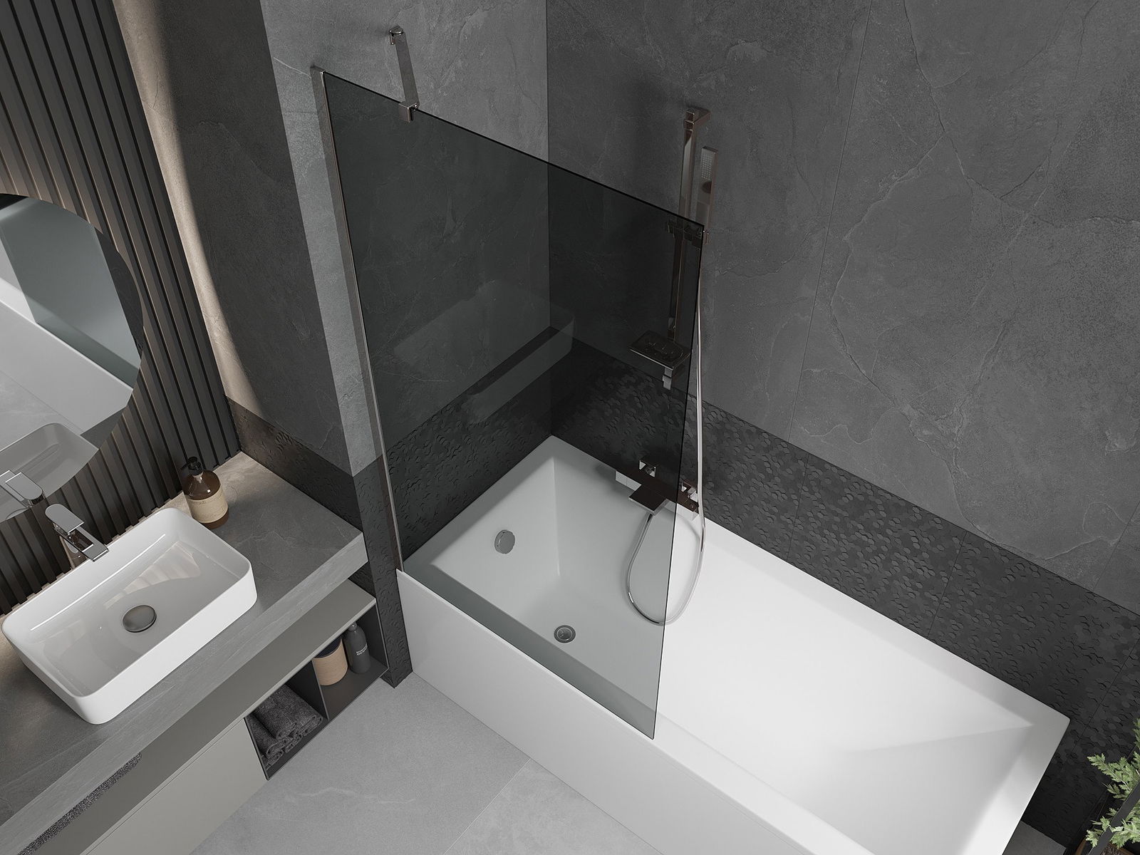 Paroi de baignoire 1 volet Mexen Next 90 x 150 cm, graphite, chrome - 895-090-000-00-40-01