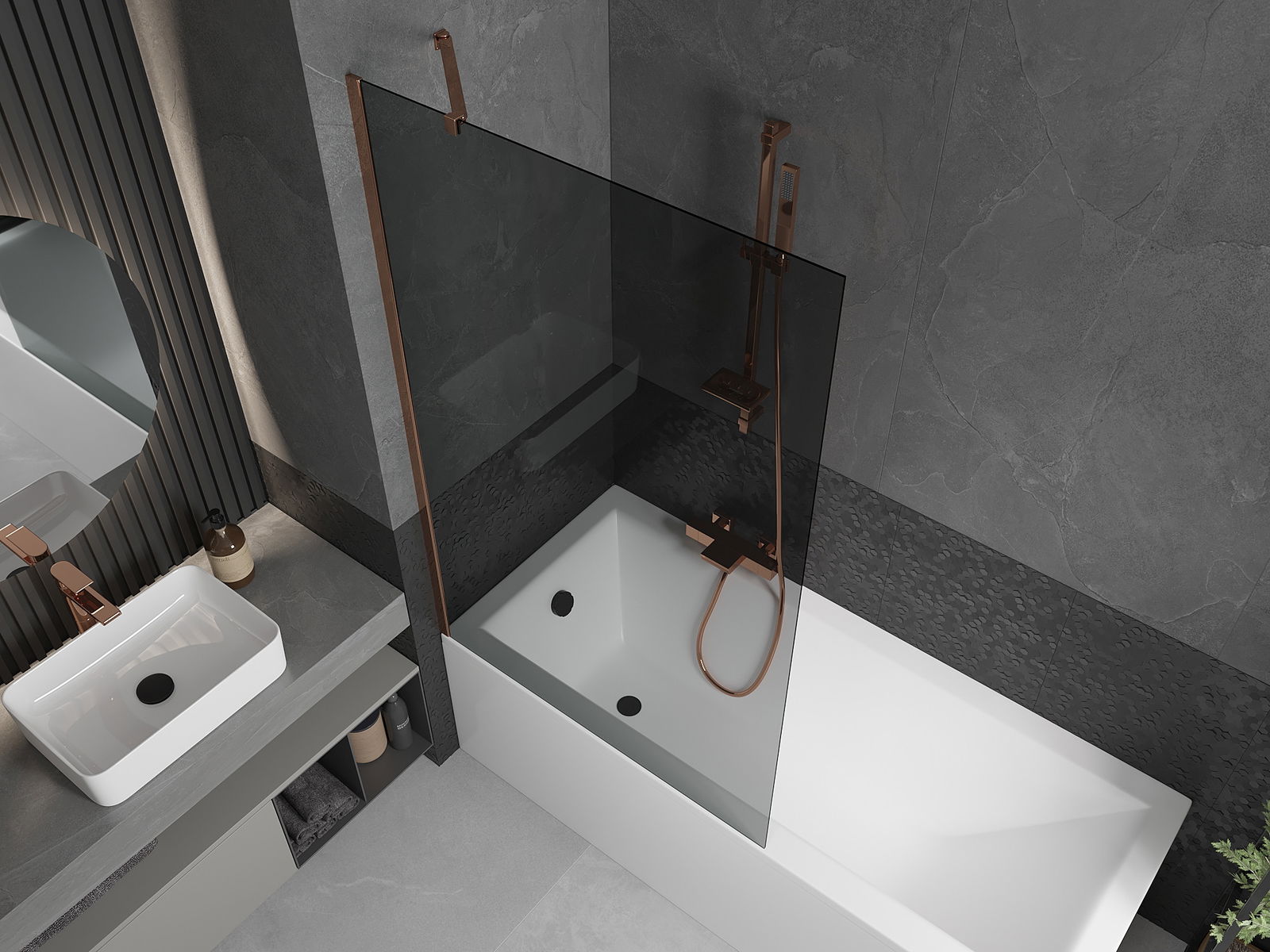 Mexen Next paroi de baignoire à 1 volet 100 x 150 cm, graphite, or rose - 895-100-000-00-40-60