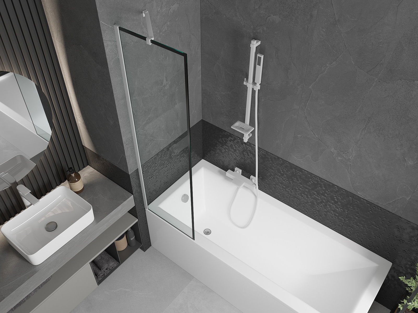 Protection efficace contre les éclaboussures d'eau pendant le bain. Le pare-baignoire est doté de joints qui s'adaptent parfaitement à la vitre et au rebord de la baignoire. Solution fonctionnelle garantissant sécurité et nettoyage facile.