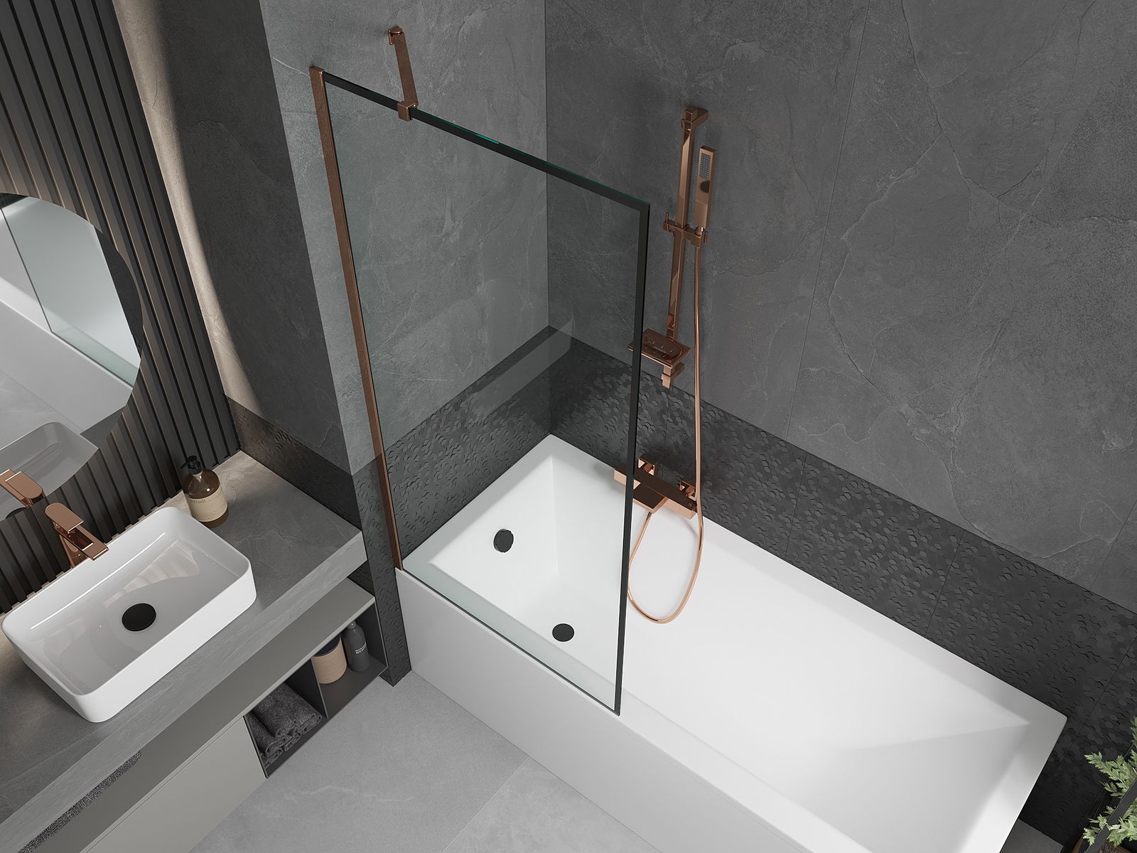 Mexen Next écran de baignoire à 1 panneau 80 x 150 cm, cadre noir, or rose - 895-080-000-00-70-60