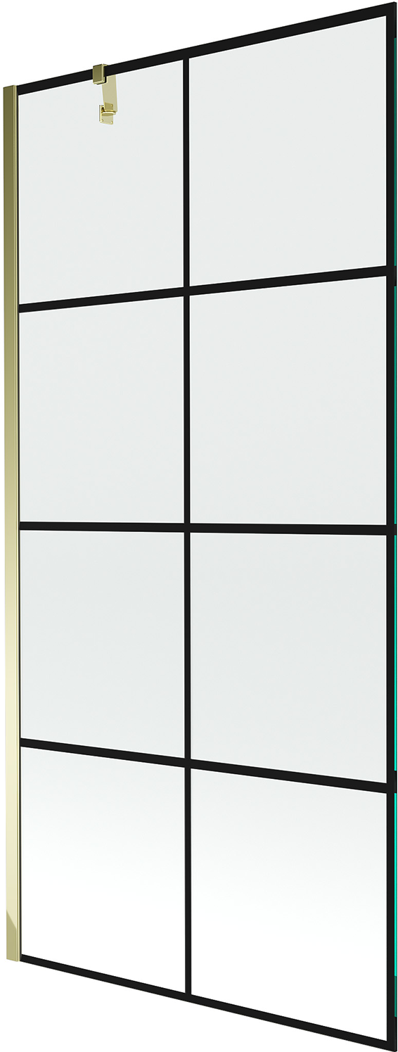 Paravent de bain Mexen Next 1 vantail 90 x 150 cm, motif à carreaux noirs, doré - 895-090-000-00-77-50