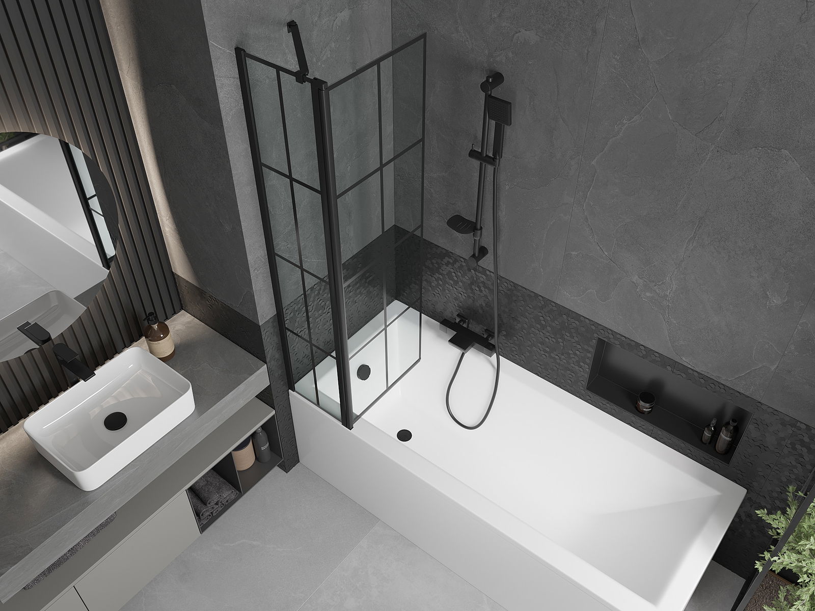 Mexen Flip pare-baignoire à 2 volets 80 x 150 cm, grille noire, noir - 894-080-101-70-77