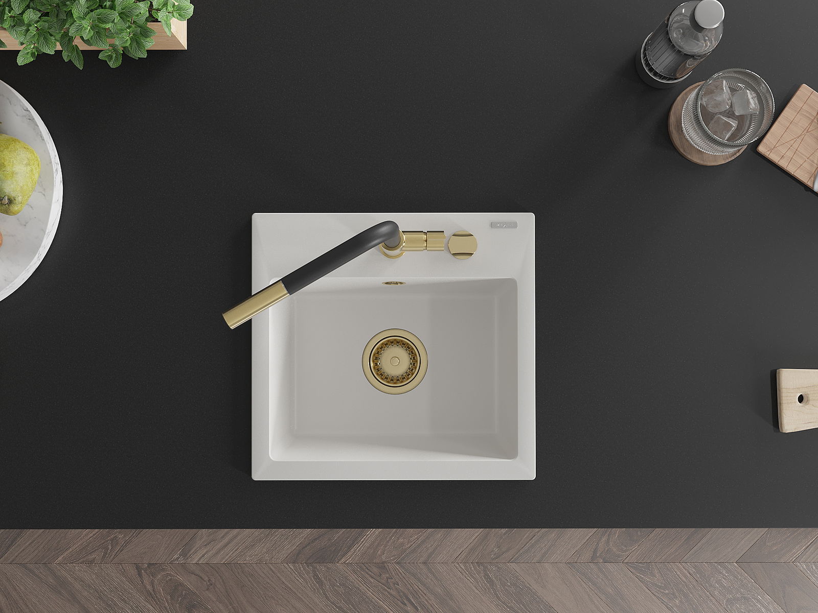 Mexen Milo évier en granit 1 bac avec robinet de cuisine Flora, blanc - 6505-20-670401-57-G