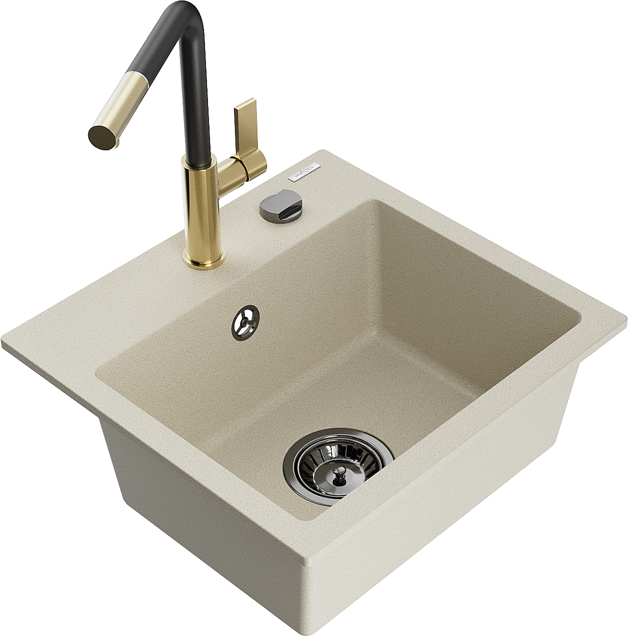 Mexen Milo évier en granit 1 bac avec robinet de cuisine Flora, beige - 6505-69-670401-57-B