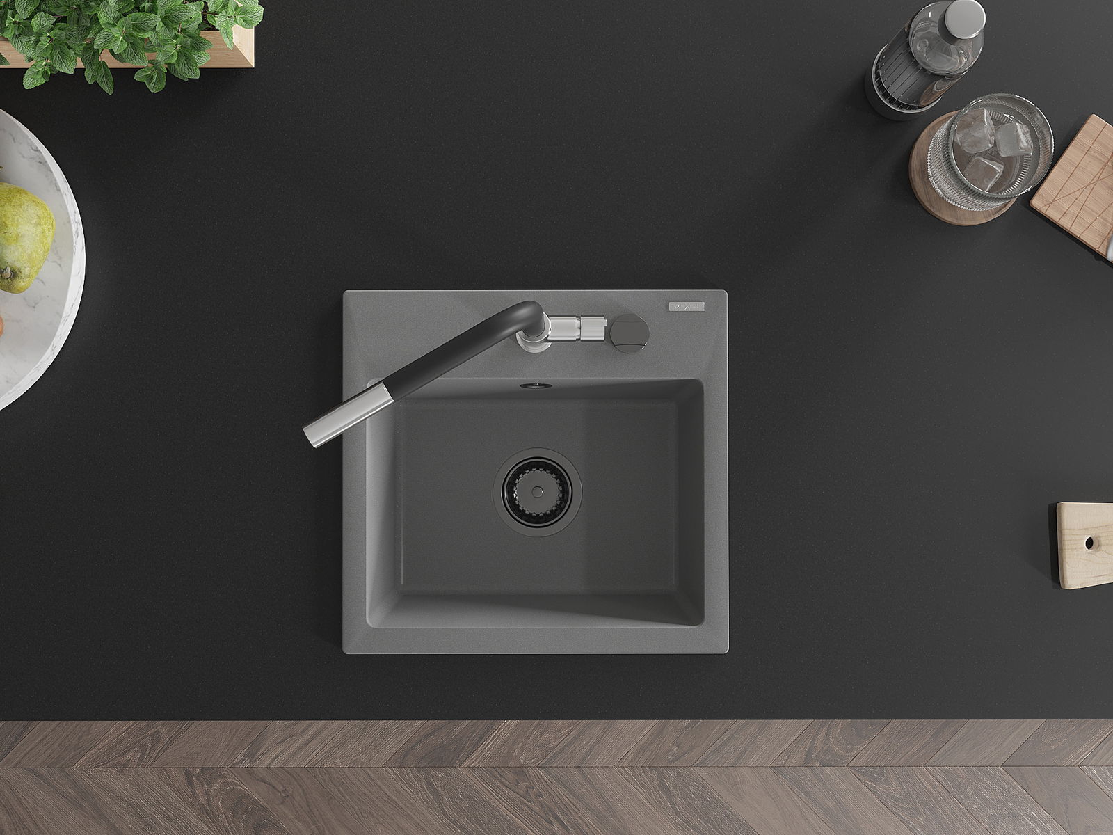 Mexen Milo évier en granit 1 bac avec robinet de cuisine Flora, gris - 6505-71-670401-07-B