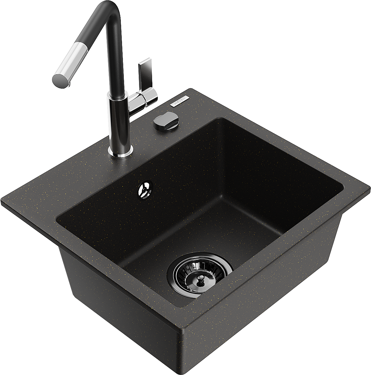 Mexen Milo évier en granit 1 bac avec robinet de cuisine Flora, noir/doré métallique - 6505-75-670401-07-B