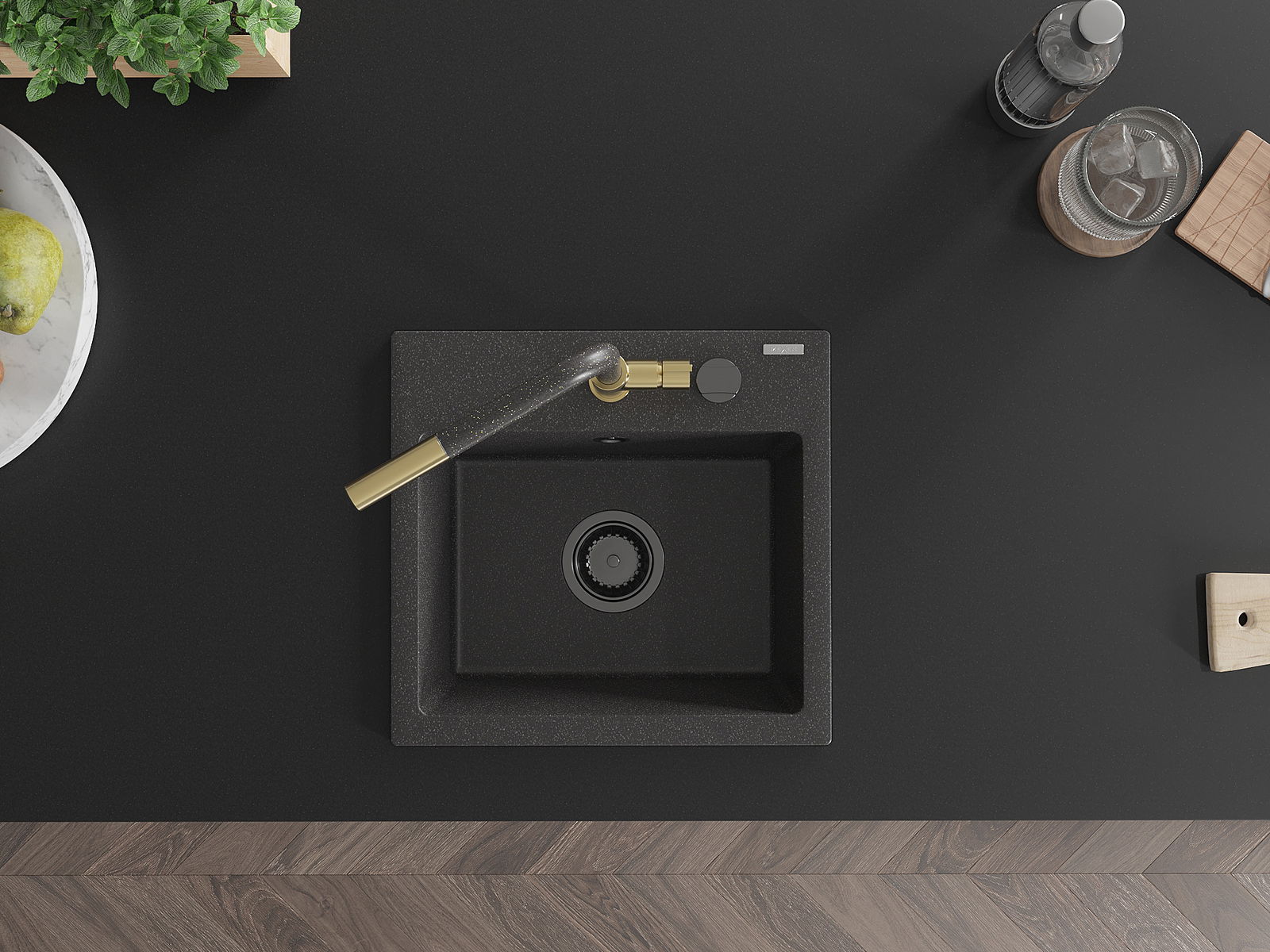 Mexen Milo évier en granit 1 bac avec mitigeur de cuisine Flora, noir moucheté - 6505-76-670401-75-B