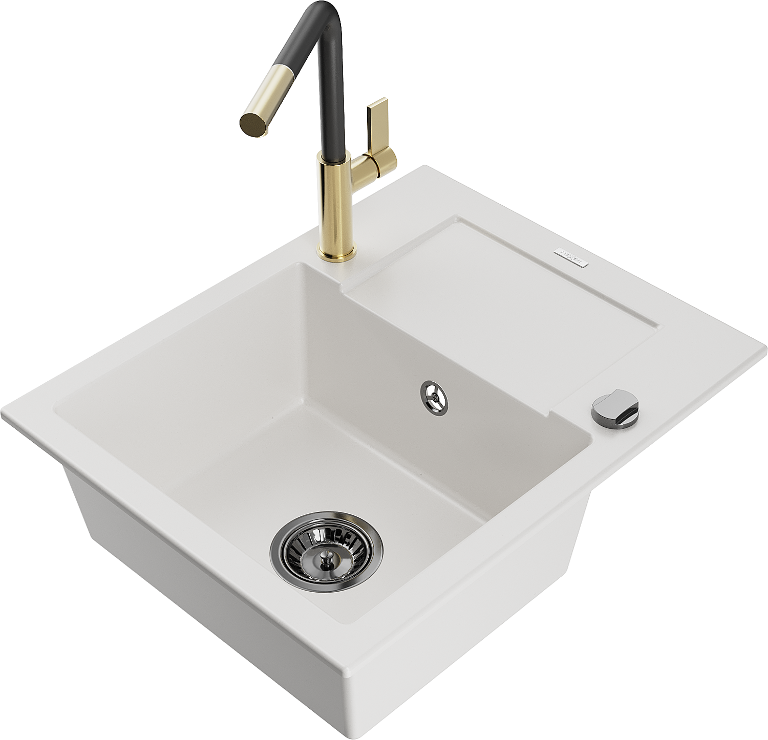 Mexen Enzo évier de cuisine en granit 1 bac avec égouttoir et robinet cuisine Flora, blanc - 6506-20-670401-57-B