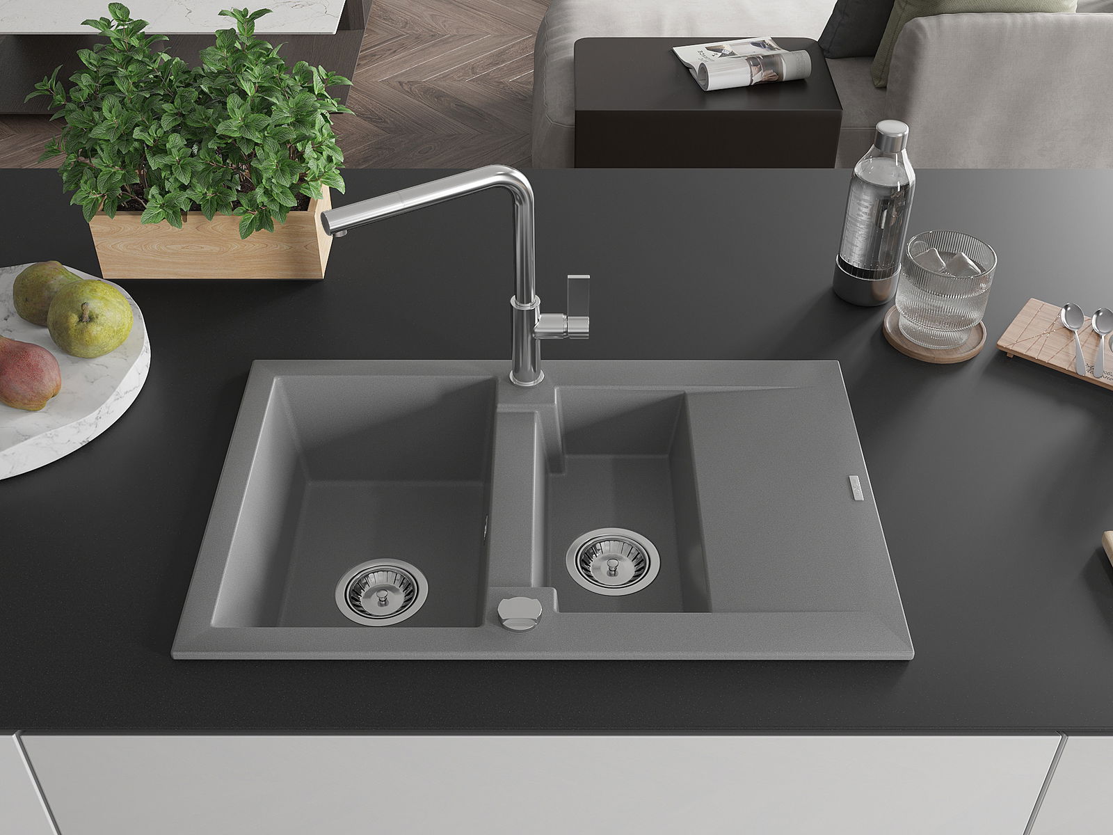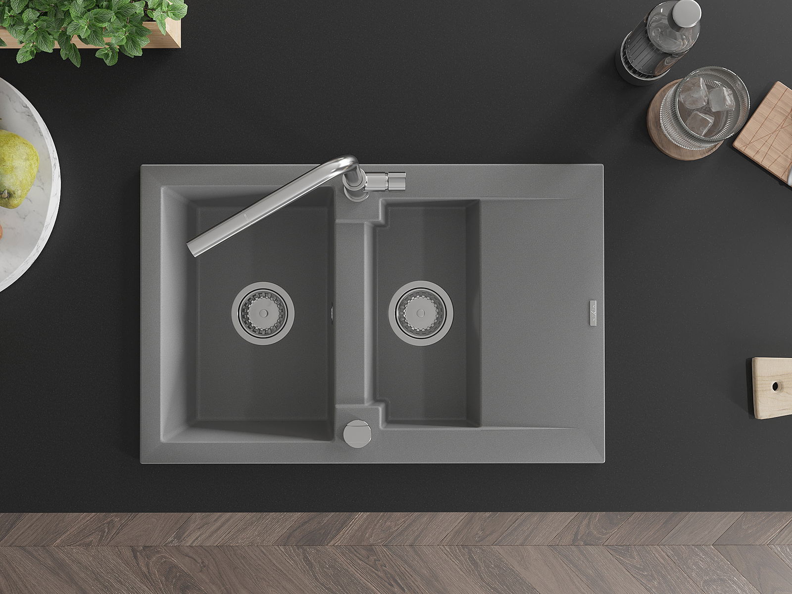 La surface de l'évier est très bien durcie, elle se distingue par une résistance exceptionnelle aux dommages mécaniques et aux rayures. Le matériau durable de fabrication permet de profiter de l'apparence de l'évier pendant de nombreuses années d'utilisation.