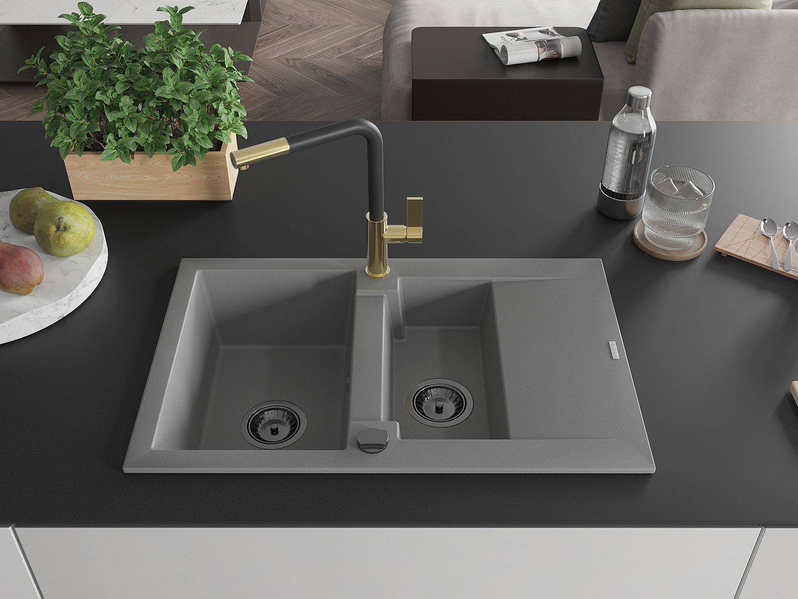 La surface de l'évier est très bien trempée et se distingue par une résistance exceptionnelle aux dommages mécaniques et aux rayures. Ce matériau durable vous permettra de profiter de son bel aspect pendant de nombreuses années.