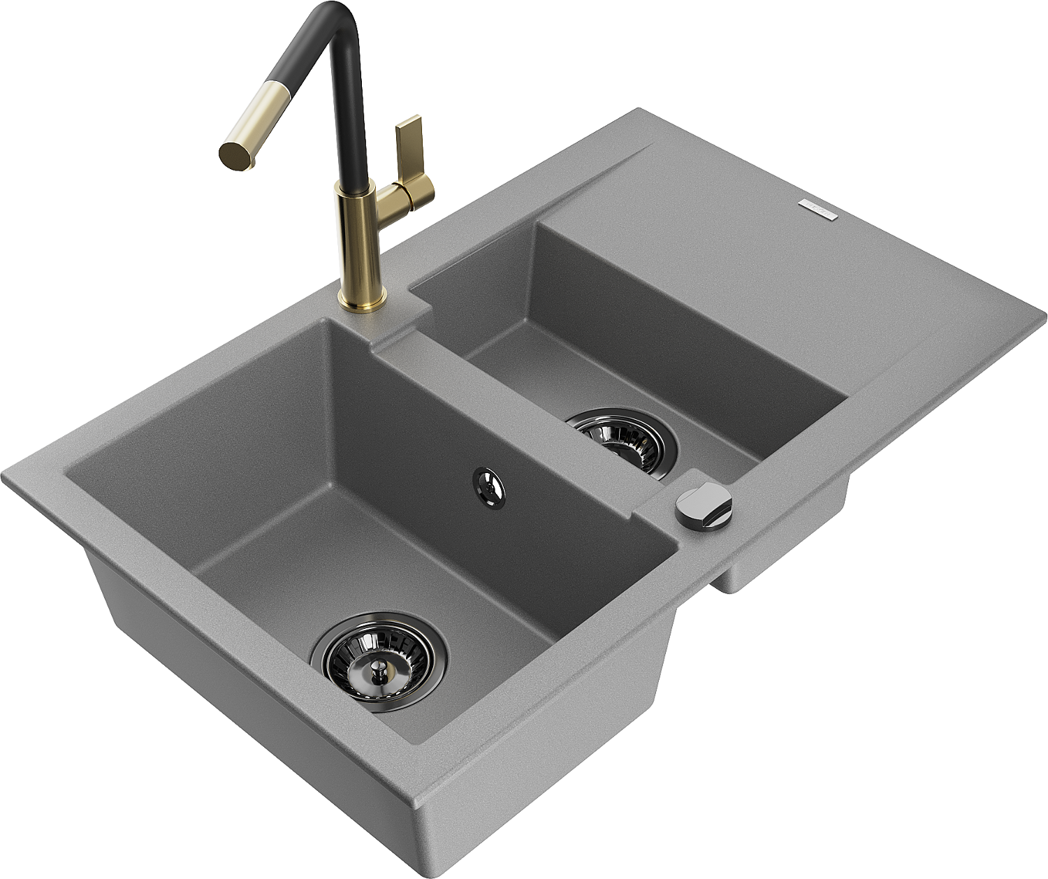 Mexen Gaspar évier en granit 1,5 bac avec égouttoir et mitigeur de cuisine Flora, gris - 6507-71-670401-57-B