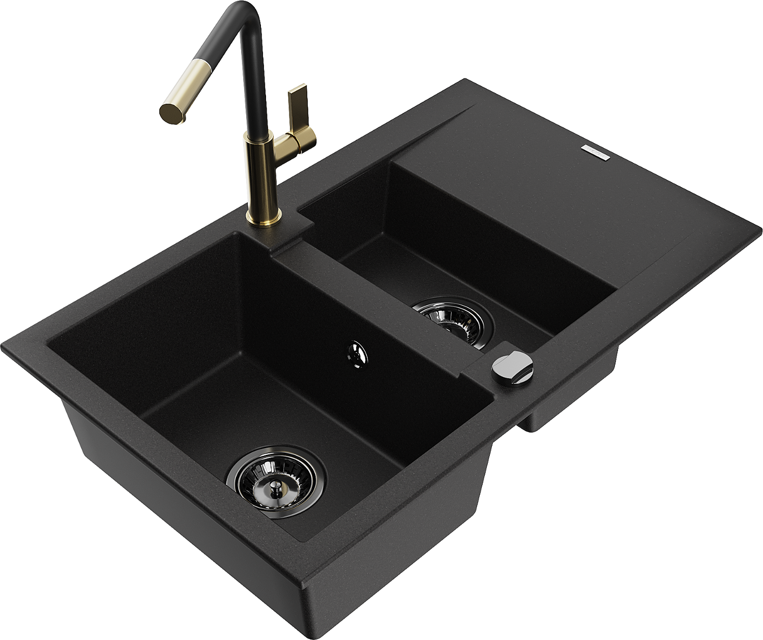 Mexen Gaspar évier en granit 1,5 bac avec égouttoir et robinet de cuisine Flora, noir - 6507-77-670401-57-B