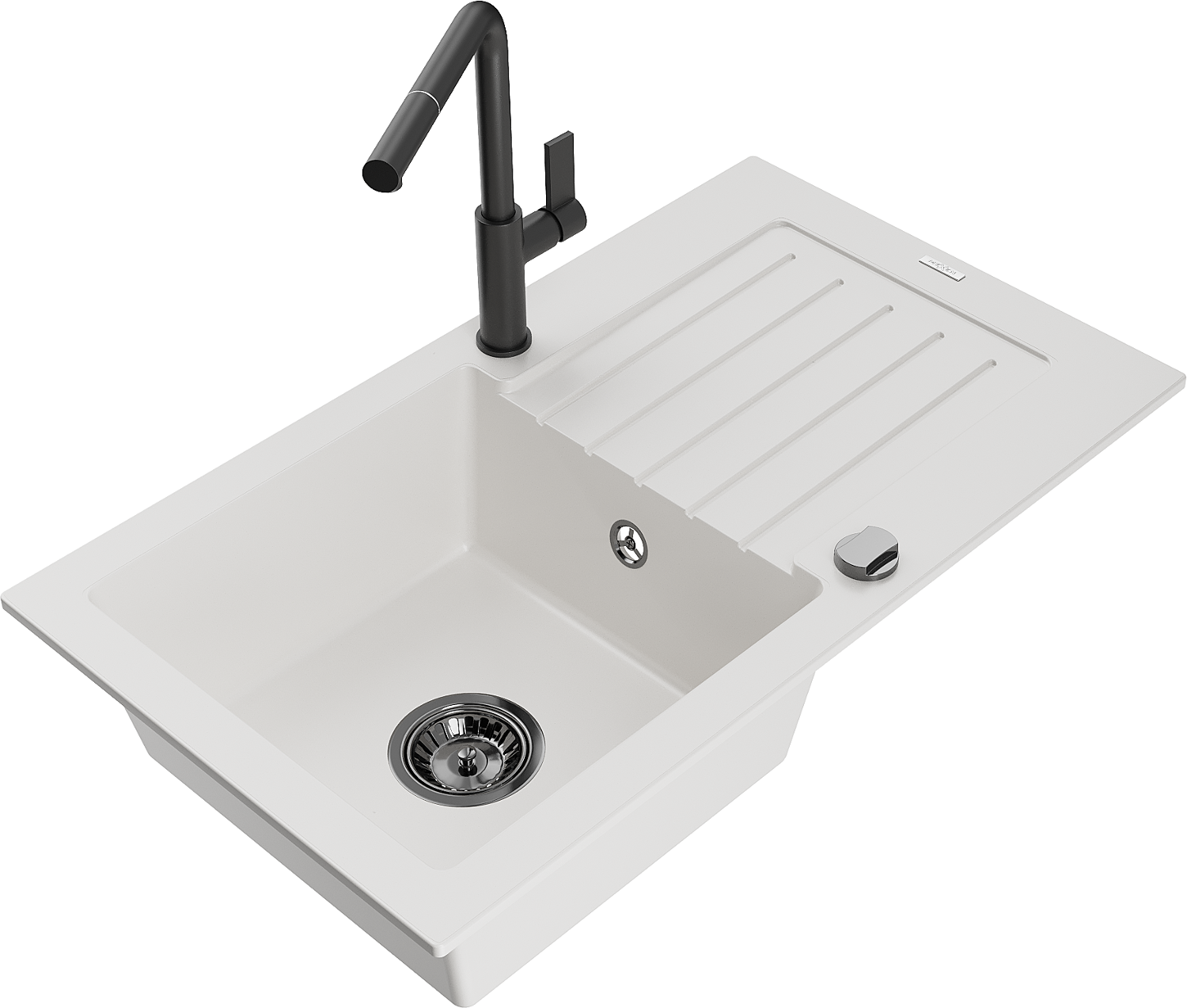 Mexen Pablo évier en granit 1 bac avec égouttoir et robinet de cuisine Flora, blanc - 6510-20-670401-70-B
