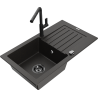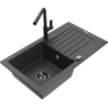 Mexen Pablo évier en granit 1 bac avec égouttoir et robinet de cuisine Flora, gris - 6510-71-670401-70-B