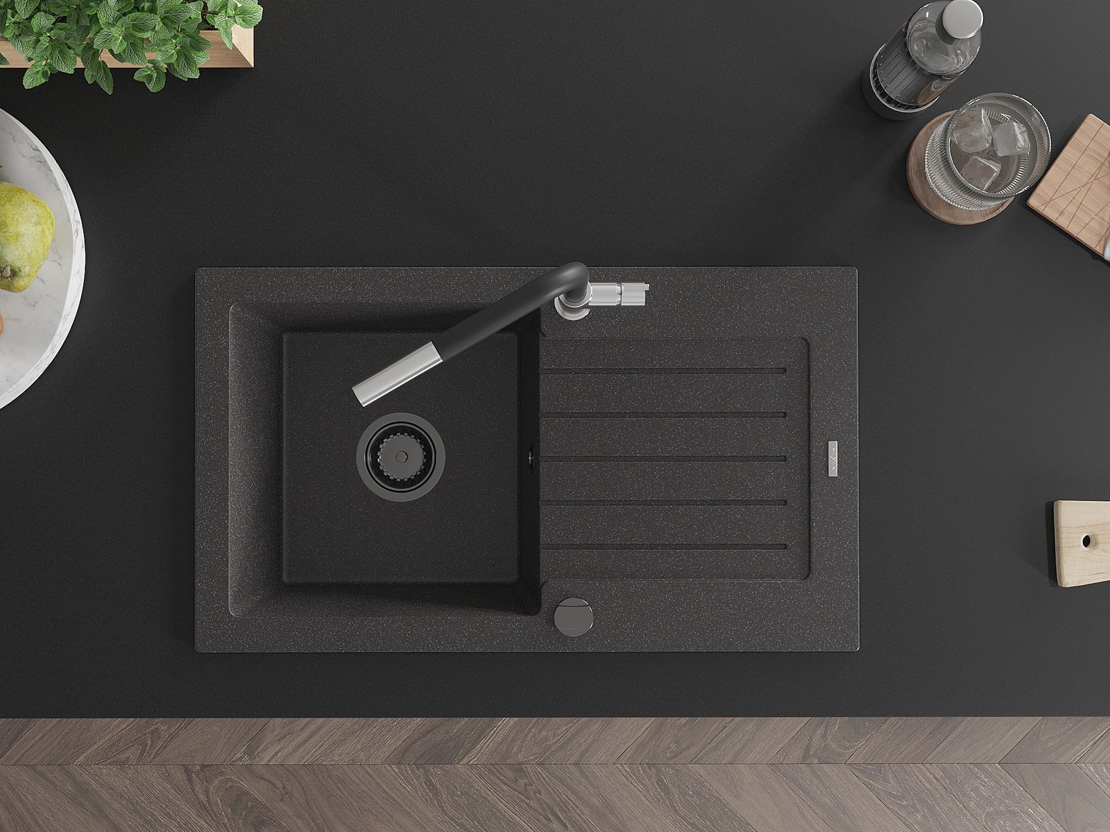 La surface de l'évier est très bien durcie, elle se distingue par une résistance exceptionnelle aux dommages mécaniques et aux rayures. Le matériau durable de fabrication permet de profiter de l'apparence de l'évier pendant de nombreuses années d'utilisation.