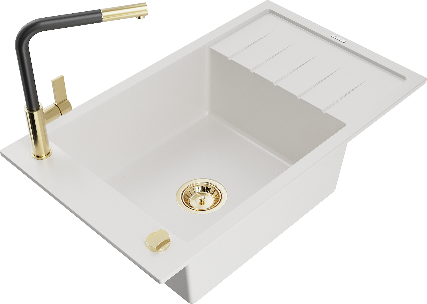 Mexen Elias évier en granit 1 bac avec égouttoir et robinet de cuisine Flora, blanc - 6511-20-670401-57-G