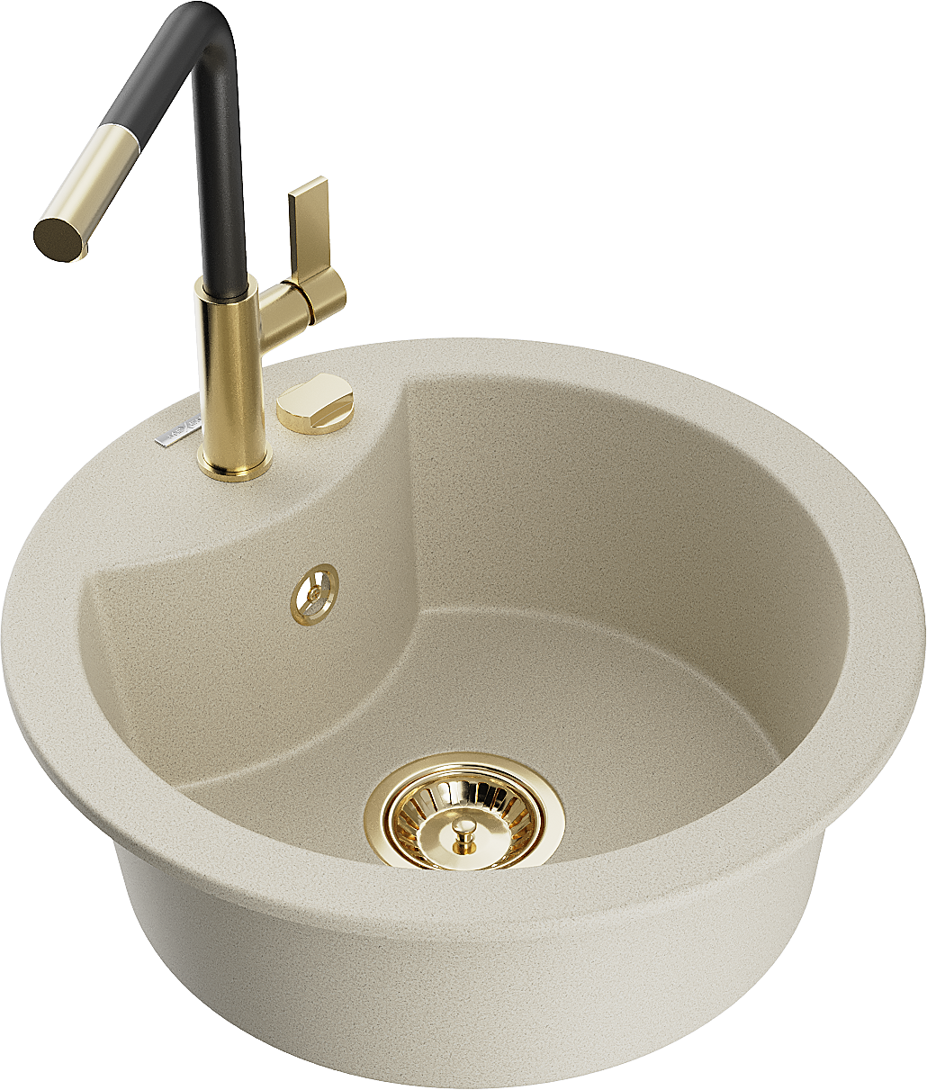 Mexen Diego évier en granit 1 bac avec mitigeur de cuisine Flora, beige - 6512-69-670401-57-G