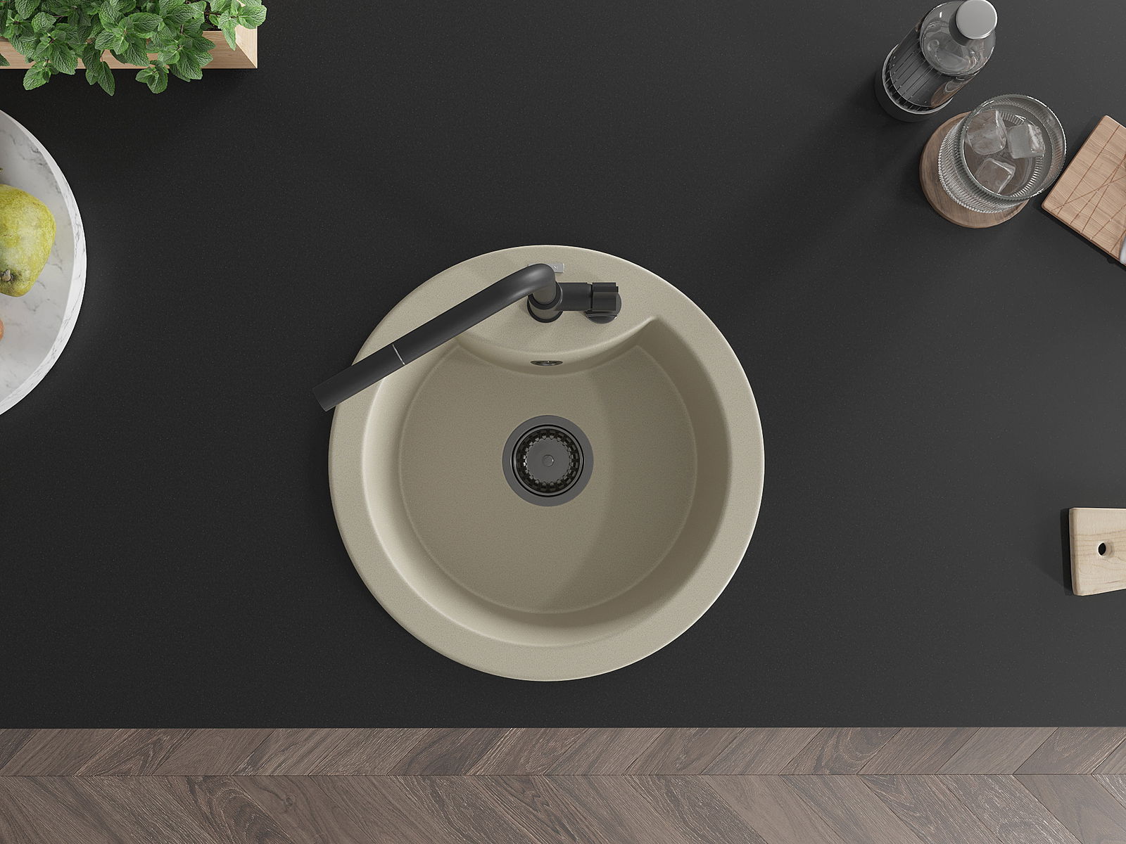 Mexen Diego évier en granit à 1 bac avec robinet de cuisine Flora, beige - 6512-69-670401-70-B