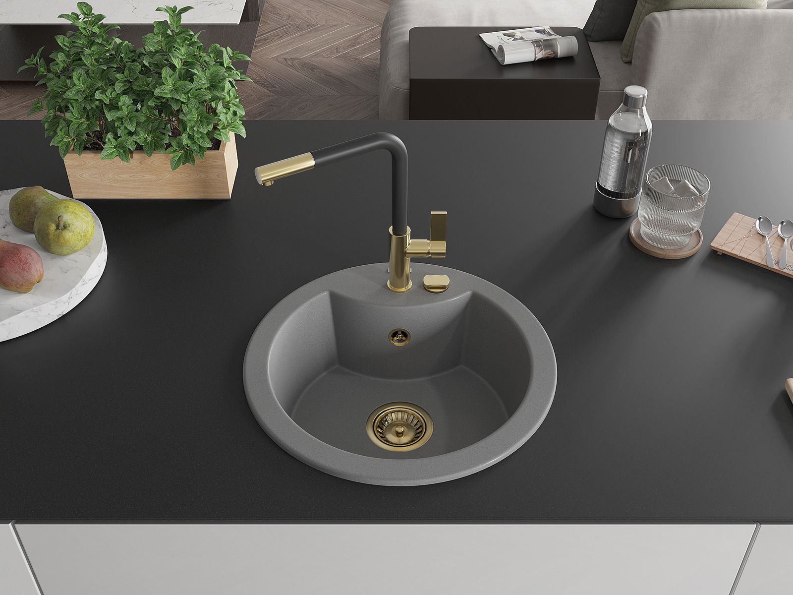 L'évier a été fabriqué en granit de haute qualité. Il constitue un complément élégant et surtout pratique à toute cuisine, quel que soit son style. La haute qualité et la durabilité du granit garantissent une utilisation pendant de nombreuses années.