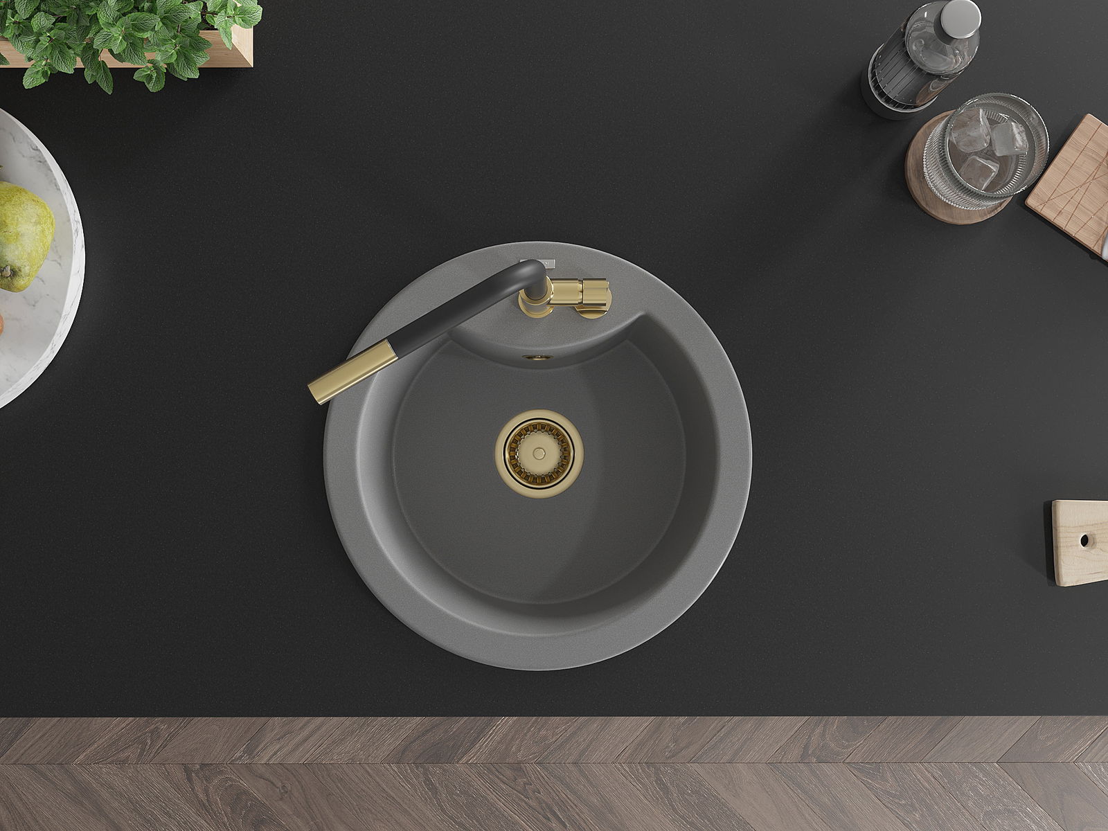 L'évier a un trou sous-meulé de 35 mm de diamètre à percer soi-même. Il peut être utilisé, entre autres, pour installer un distributeur de liquide, ce qui éliminera la présence de bouteilles en plastique dans la cuisine et lui donnera une finition élégante.