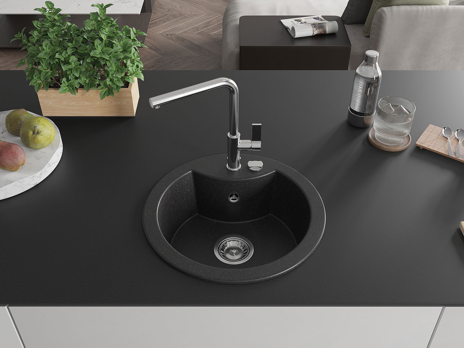 L'évier a été fabriqué en granit de haute qualité. Il constitue un complément élégant et surtout pratique à toute cuisine, quel que soit son style. La haute qualité et la durabilité du granit garantissent une utilisation pendant de nombreuses années.