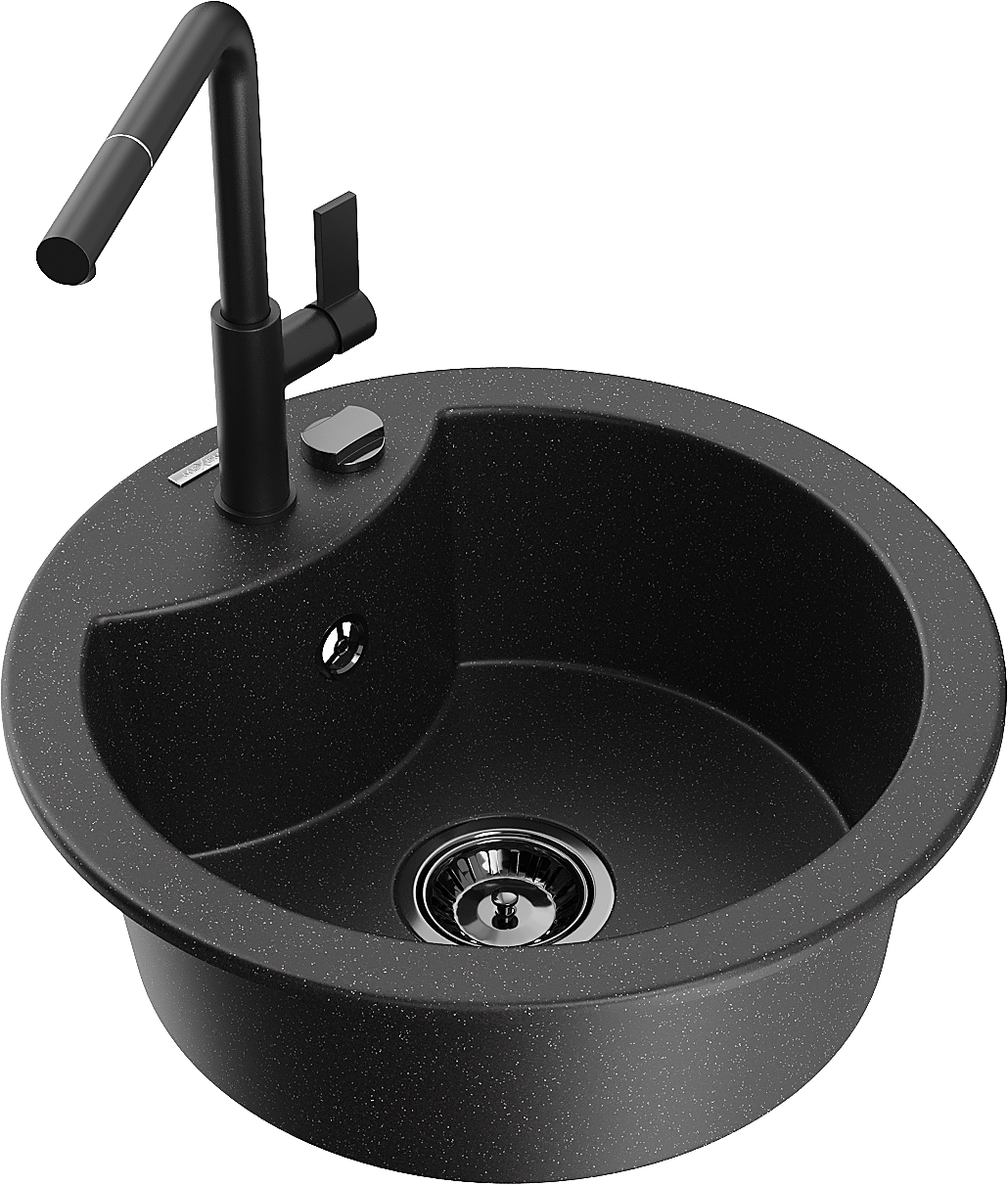 Mexen Diego évier en granit 1 bac avec robinet de cuisine Flora, noir/métallique argenté - 6512-73-670401-70-B