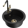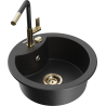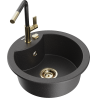 Mexen Diego évier en granit 1 bac avec robinet de cuisine Flora, noir moucheté - 6512-76-670401-57-G