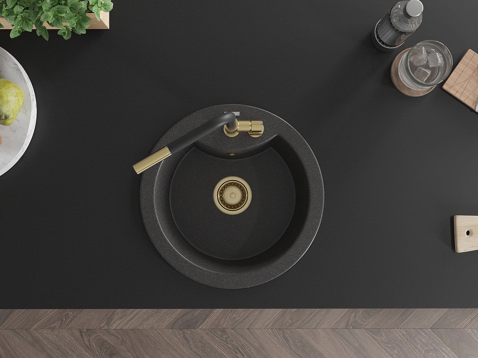 L'évier a un trou sous-meulé de 35 mm de diamètre à percer soi-même. Il peut être utilisé, entre autres, pour installer un distributeur de liquide, ce qui éliminera la présence de bouteilles en plastique dans la cuisine et lui donnera une finition élégante.