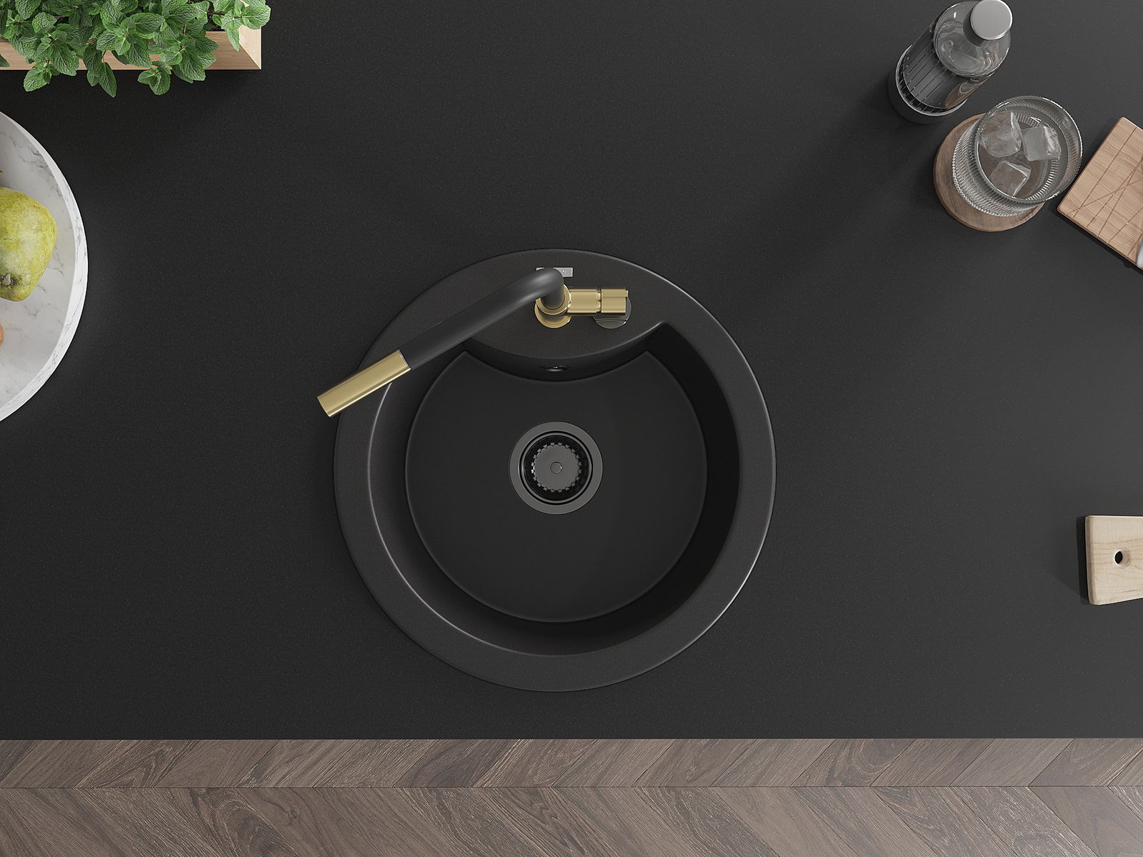 L'évier a un trou sous-meulé de 35 mm de diamètre à percer soi-même. Il peut être utilisé, entre autres, pour installer un distributeur de liquide, ce qui éliminera la présence de bouteilles en plastique dans la cuisine et lui donnera une finition élégante.