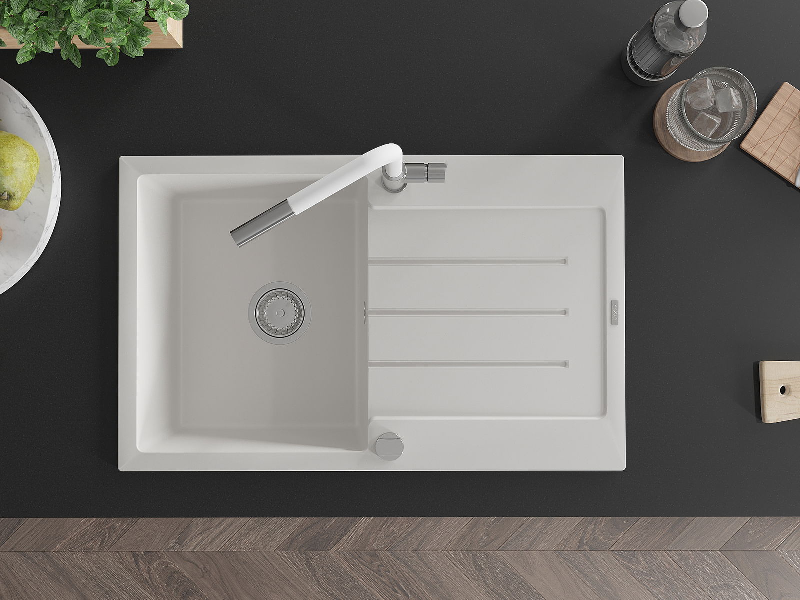 L'évier se distingue par une résistance exceptionnelle aux hautes températures et à leurs changements soudains, ce qui évite toute déformation même sous l'effet prolongé de l'eau chaude.