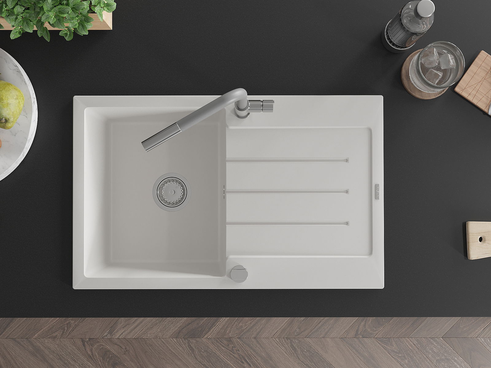 La surface de l'évier est très bien durcie, elle se distingue par une résistance exceptionnelle aux dommages mécaniques et aux rayures. Le matériau durable de fabrication permet de profiter de l'apparence de l'évier pendant de nombreuses années d'utilisation.