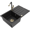 Mexen Bruno évier en granit 1 bac avec égouttoir et robinet de cuisine Flora, blanc - 6513-20-670401-57-G
