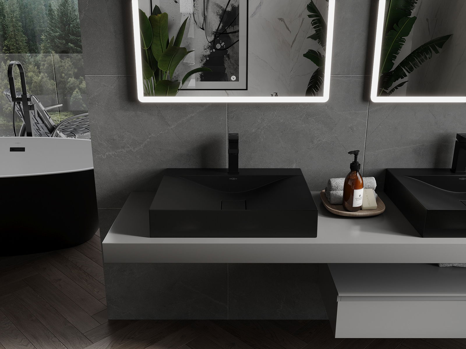Mexen Poli lavabo à poser en conglomérat 1/O 60 x 48 cm, noir - 23026071