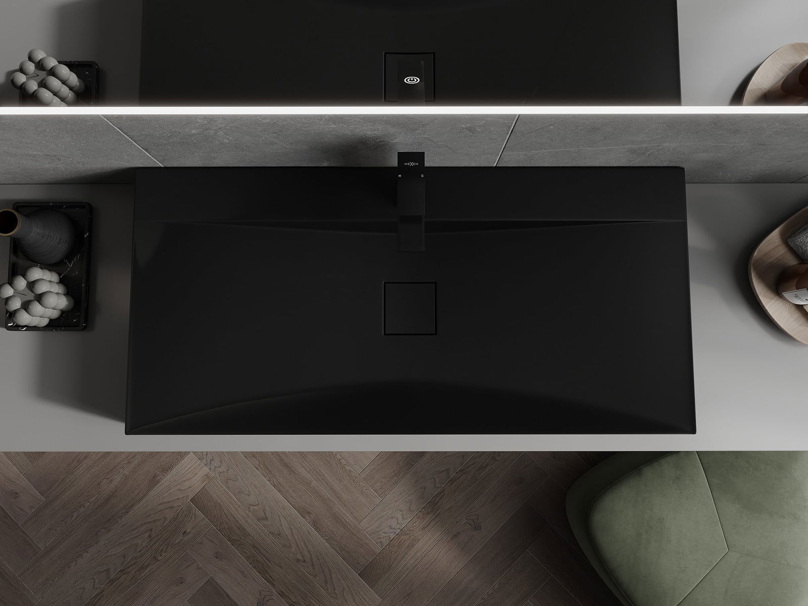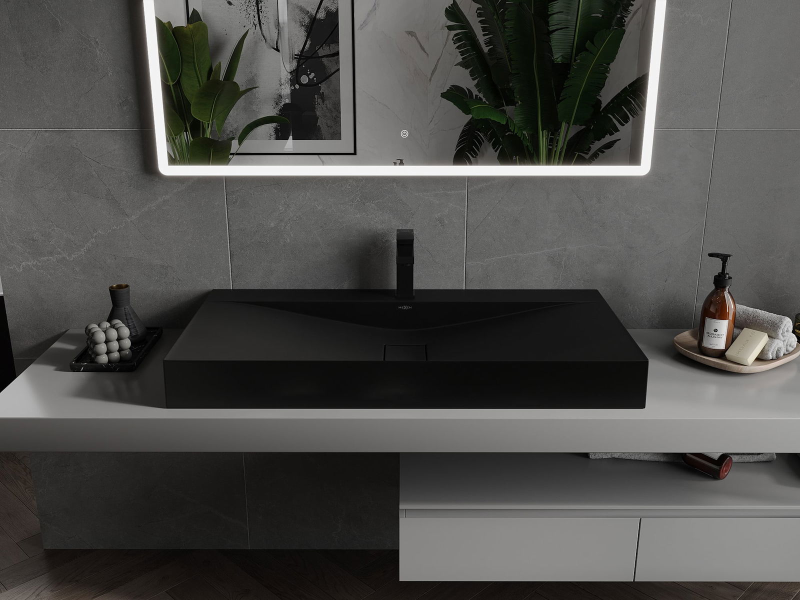 Mexen Poli lavabo à poser en conglomérat 1/O 100 x 48 cm, noir - 23021071