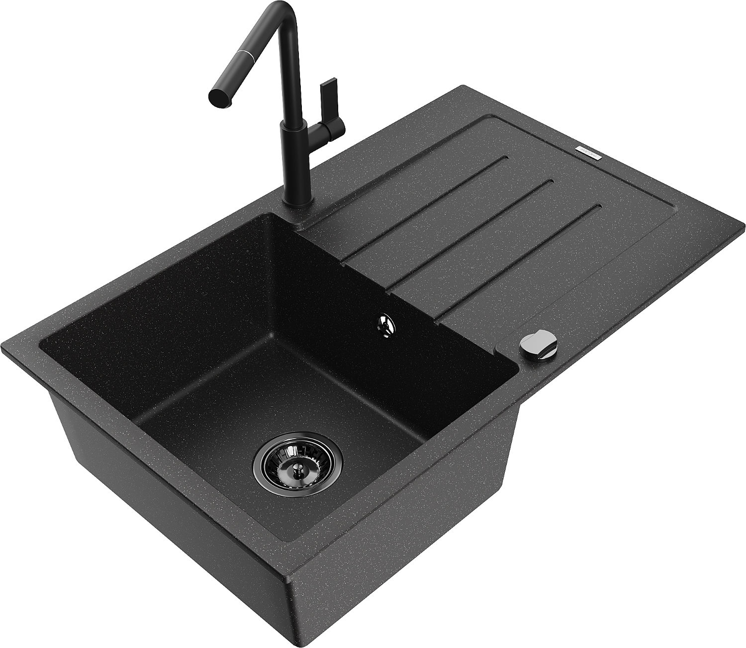 Mexen Bruno évier en granit 1 bac avec égouttoir et mitigeur de cuisine Flora, noir/métallique argenté - 6513-73-670401-70-B
