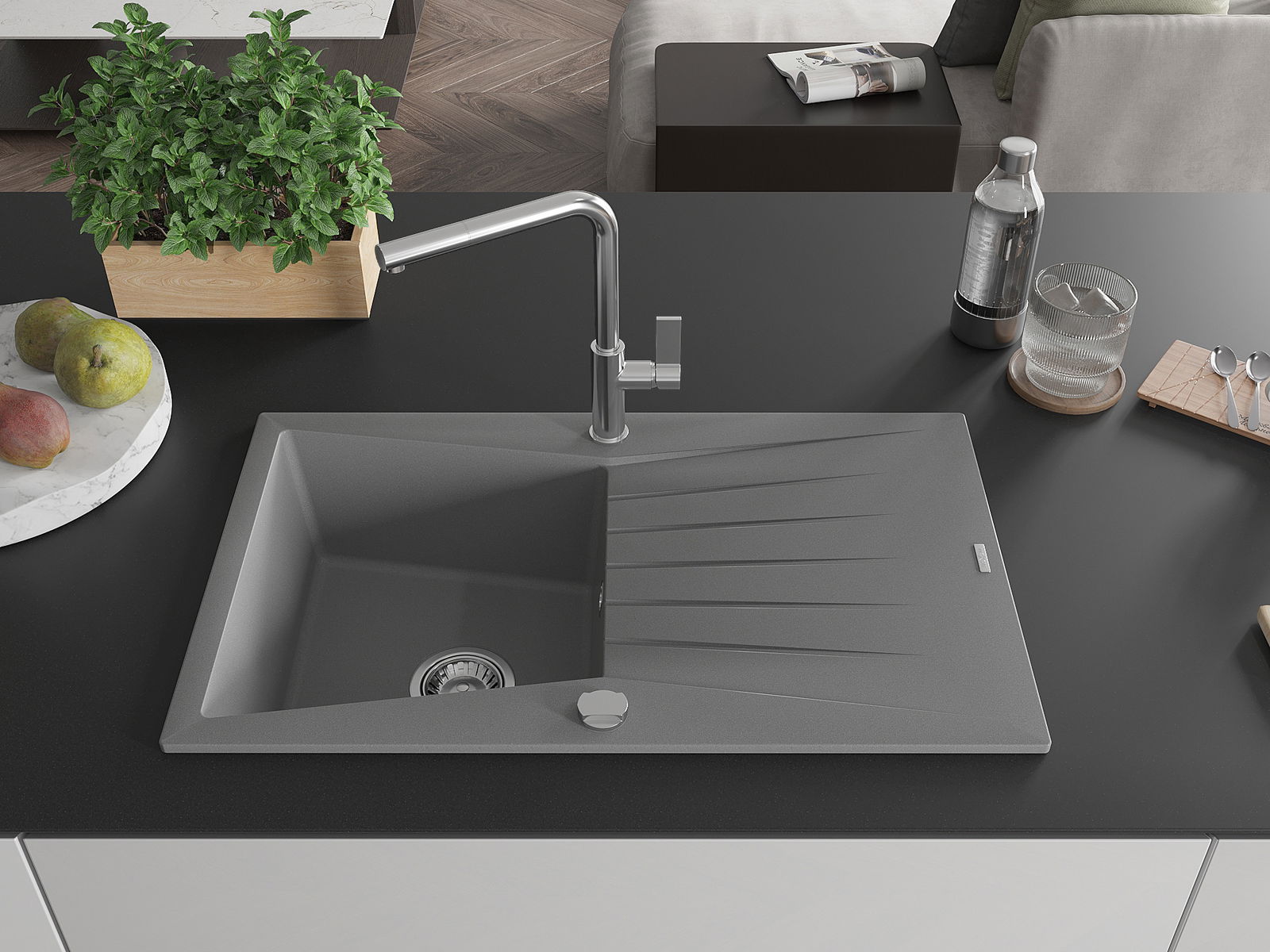 L'évier a été fabriqué en granit de haute qualité. Il constitue un complément élégant et surtout pratique à toute cuisine, quel que soit son style. La haute qualité et la durabilité du granit garantissent une utilisation pendant de nombreuses années.