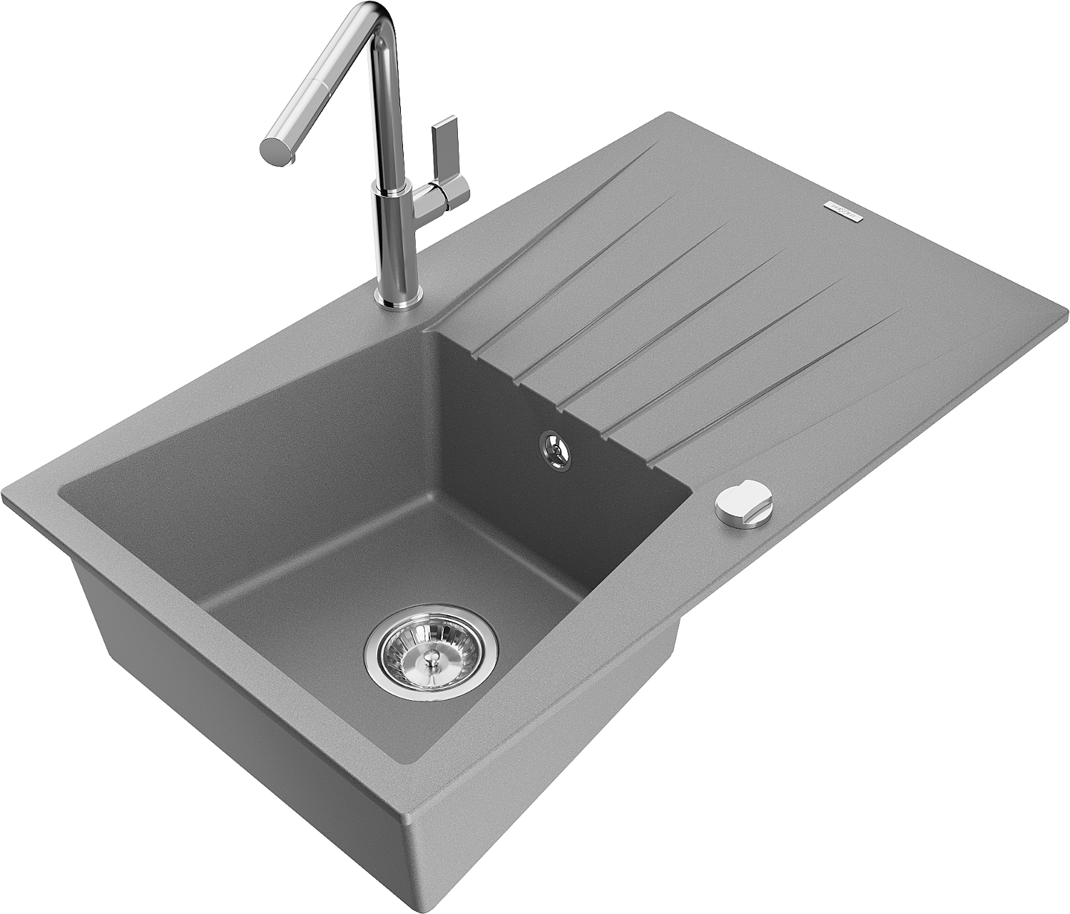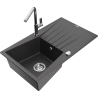 Mexen Cesar évier en granit 1 bac avec égouttoir et robinet de cuisine Flora, gris - 6514-71-670401-00