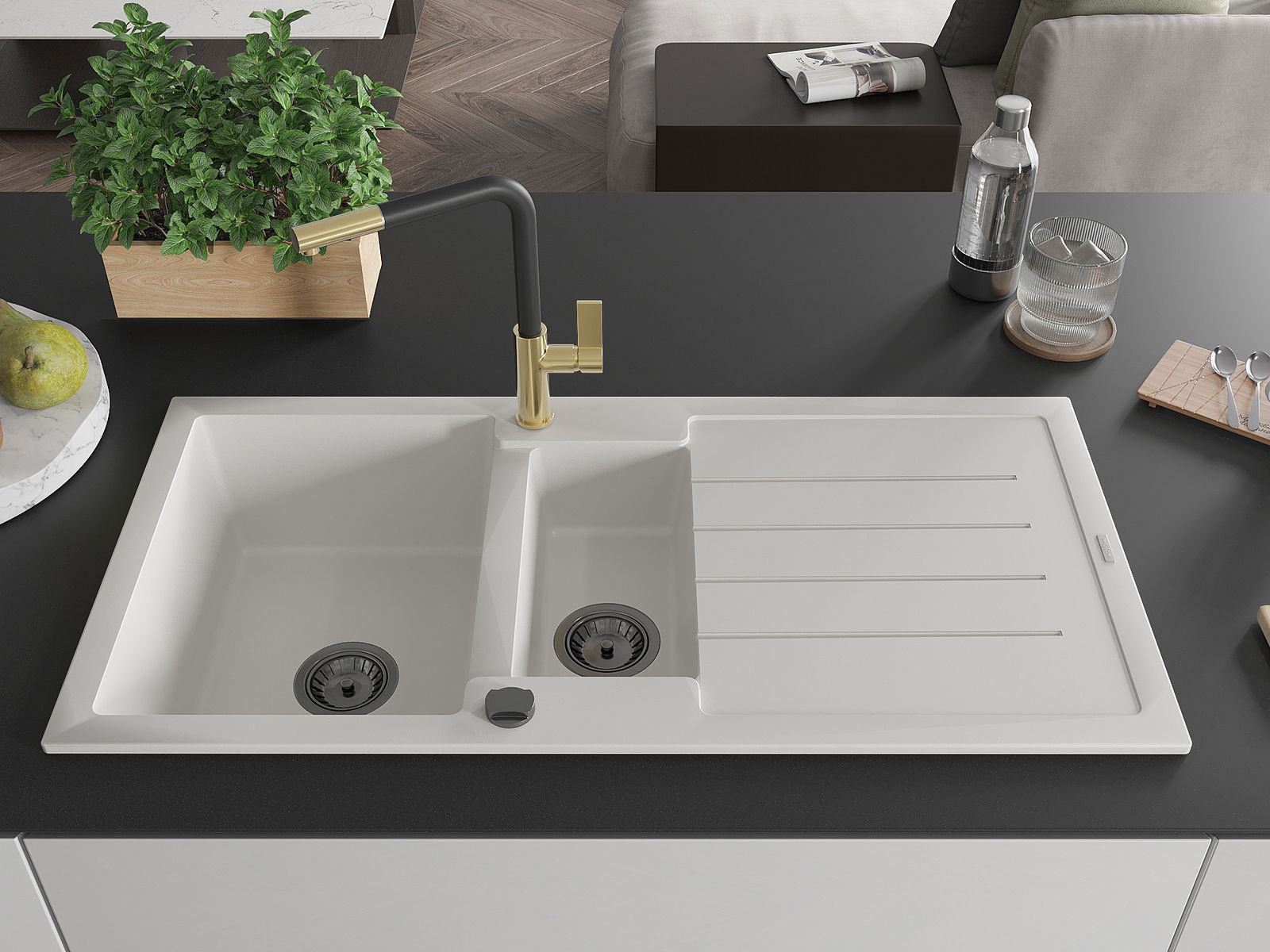 L'évier a été fabriqué en granit de haute qualité. Il constitue un complément élégant et surtout pratique à toute cuisine, quel que soit son style. La haute qualité et la durabilité du granit garantissent une utilisation pendant de nombreuses années.