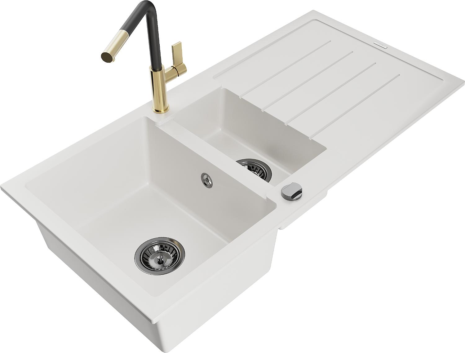 Mexen Andres évier en granite 1,5 bac avec égouttoir et robinet de cuisine Flora, blanc - 6515-20-670401-57-B