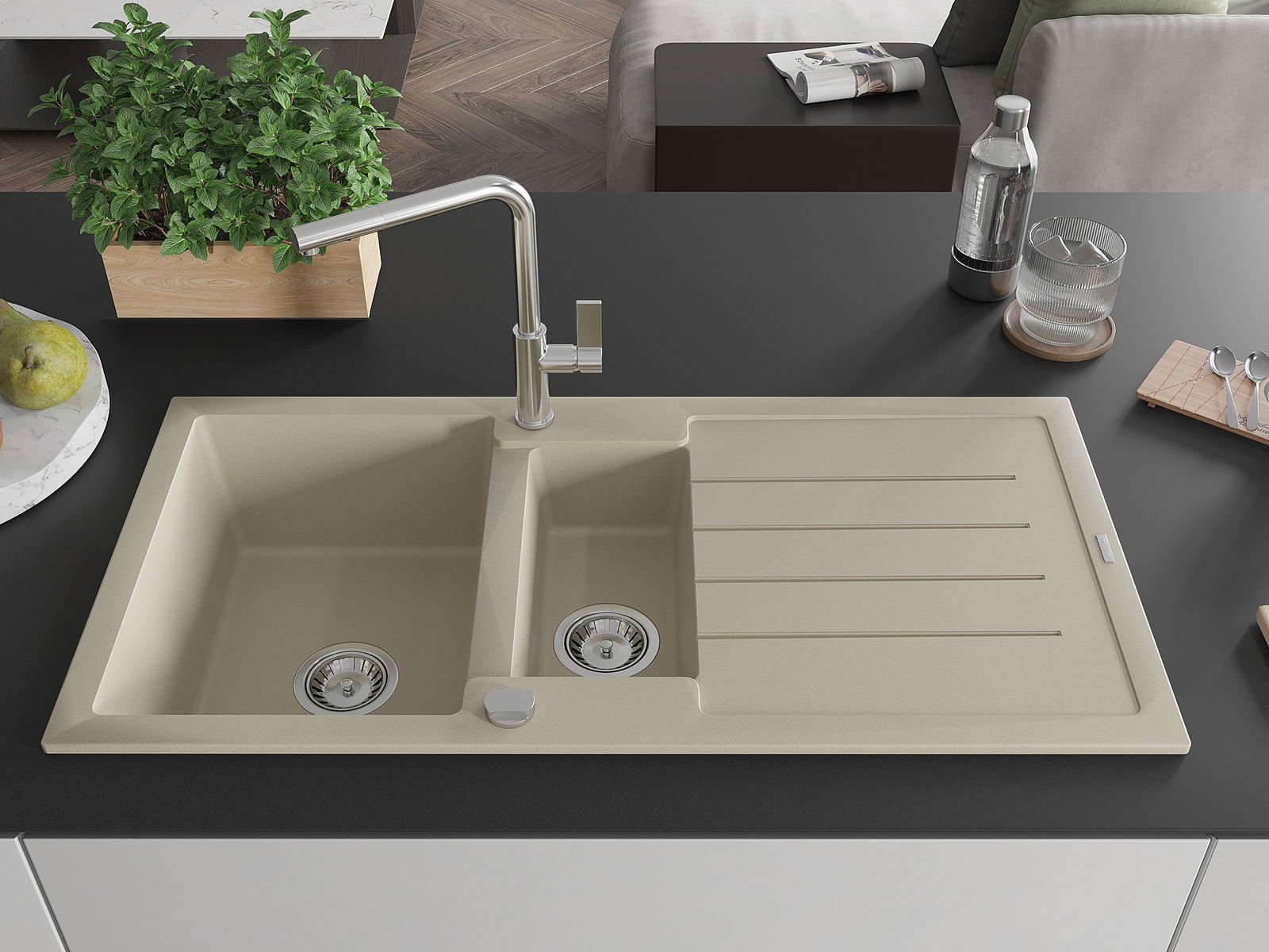 L'évier a été fabriqué en granit de haute qualité. Il constitue un complément élégant et surtout pratique à toute cuisine, quel que soit son style. La haute qualité et la durabilité du granit garantissent une utilisation pendant de nombreuses années.