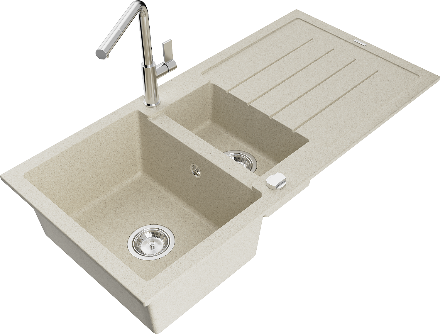 Mexen Andres évier en granit 1,5 bac avec égouttoir et robinet de cuisine Flora, beige - 6515-69-670401-00