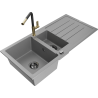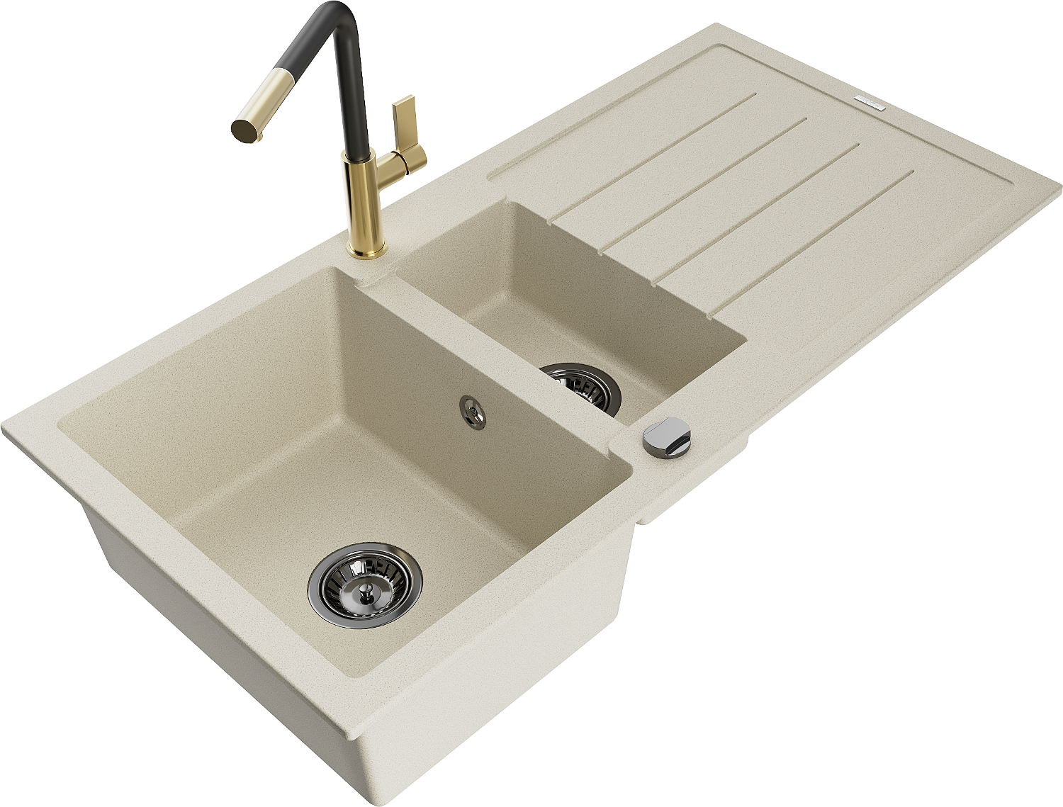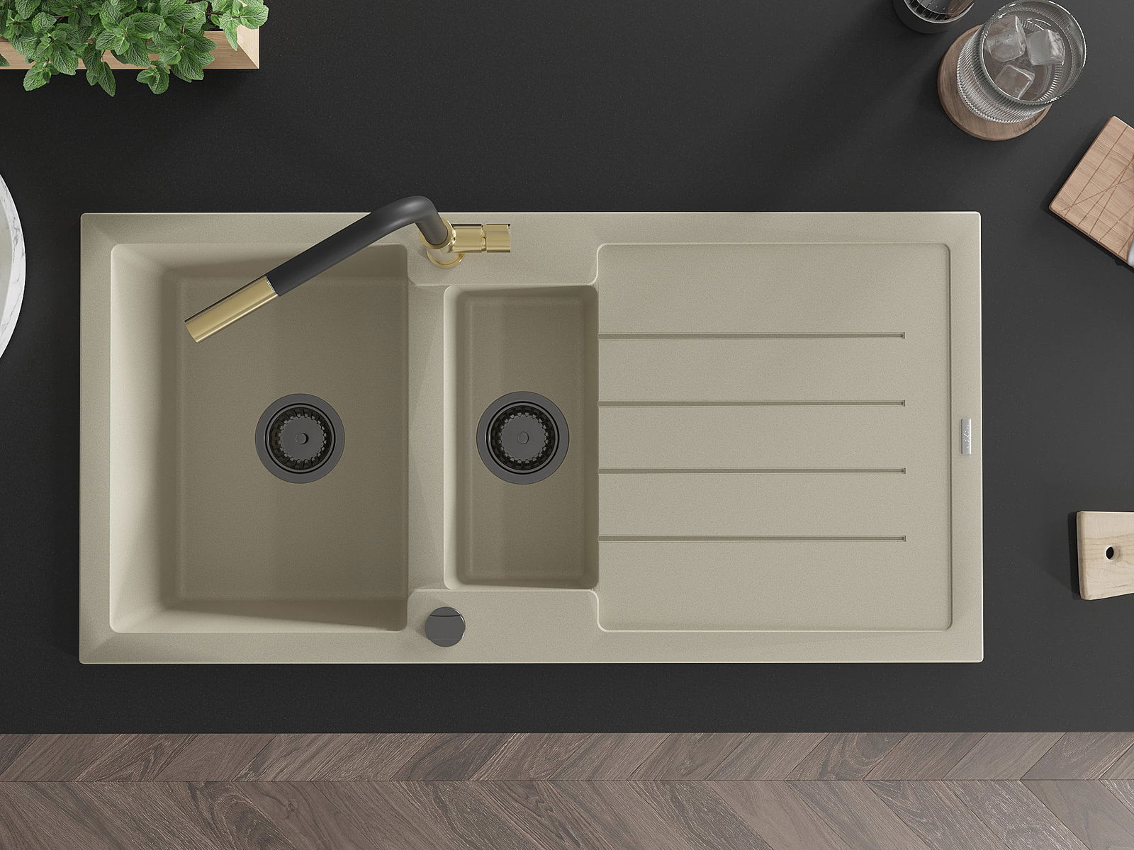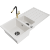 Mexen Andres évier en granit 1,5 bac avec égouttoir et robinet de cuisine Flora, beige - 6515-69-670401-57-B