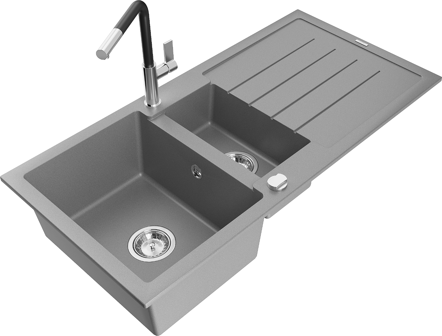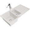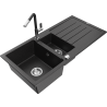 Mexen Andres évier en granit 1,5 bac avec égouttoir et robinet de cuisine Flora, gris - 6515-71-670401-07