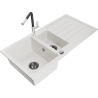 Mexen Andres évier en granit 1,5 bac avec égouttoir et robinet de cuisine Flora, noir - 6515-77-670401-07-B