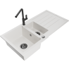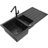 Mexen Andres évier granit 1,5-bac avec égouttoir et robinet de cuisine Flora, noir - 6515-77-670401-70-B