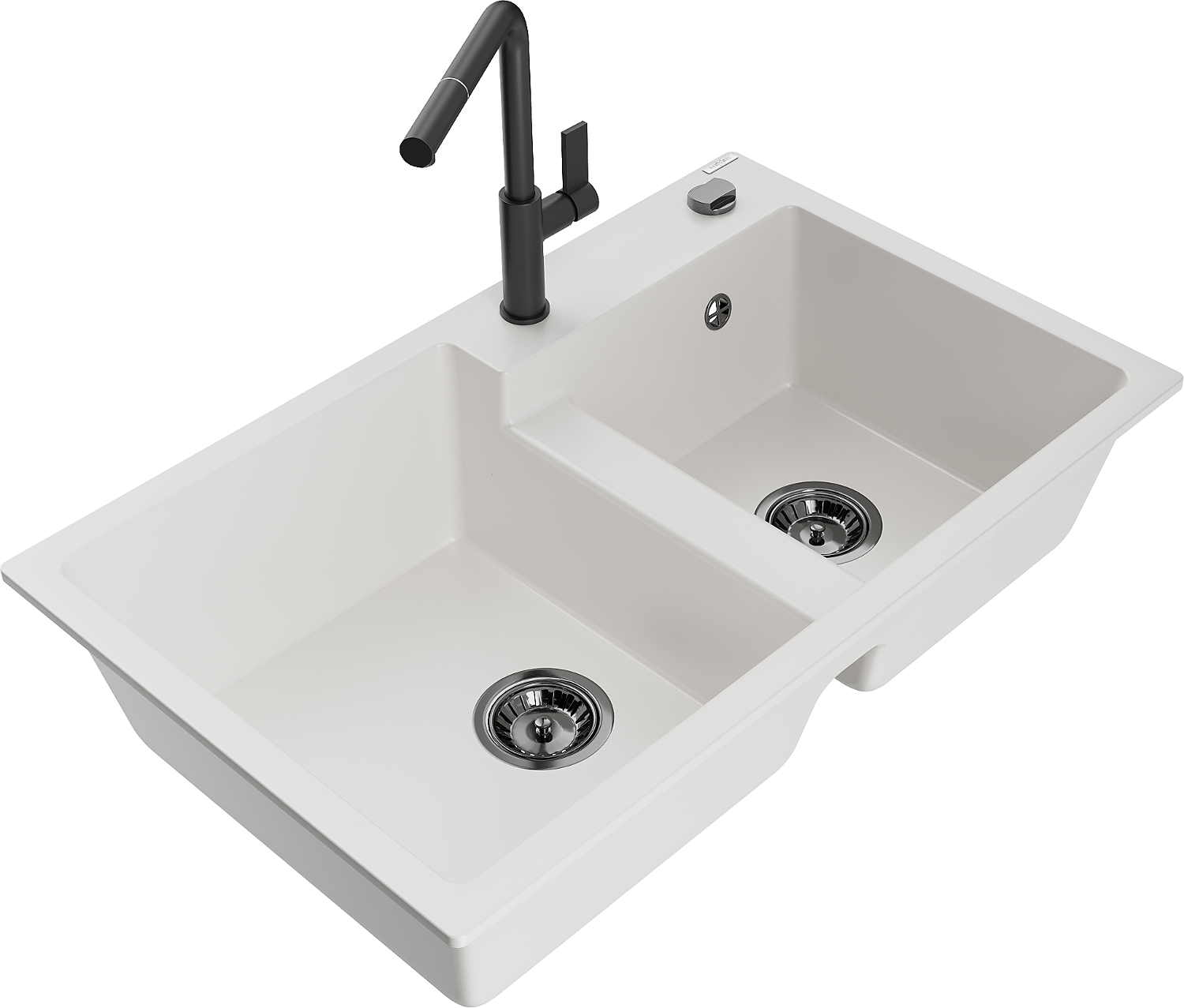 Mexen Tomas évier de cuisine en granit 2 bacs avec robinet Flora, blanc - 6516-20-670401-70-B