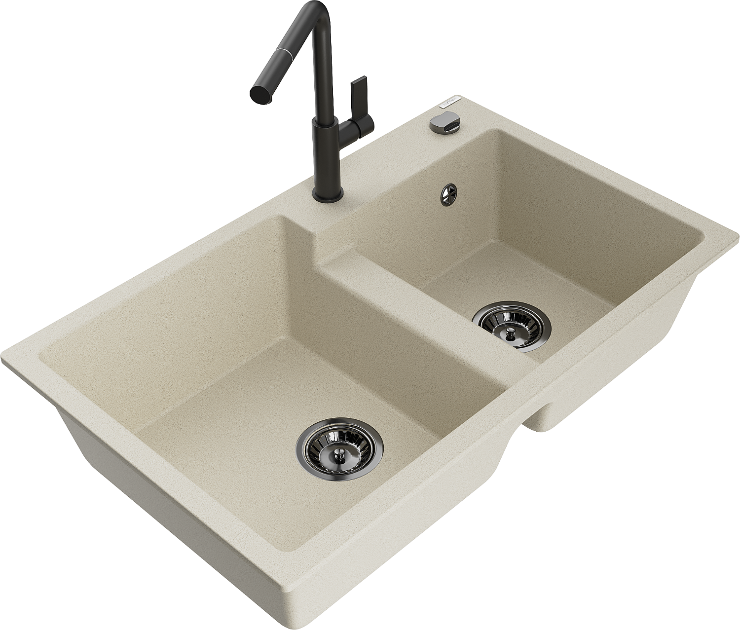 Mexen Tomas évier en granit à 2 bacs avec mitigeur de cuisine Flora, beige - 6516-69-670401-70-B
