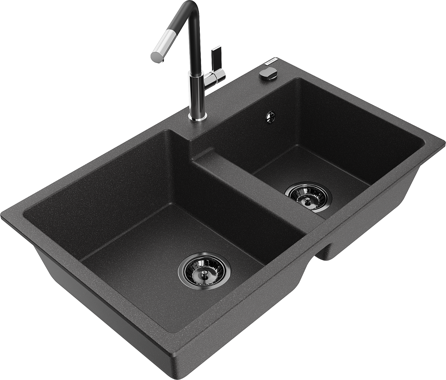 Mexen Tomas évier en granit à 2 bacs avec robinet de cuisine Flora, noir moucheté - 6516-76-670401-07-B