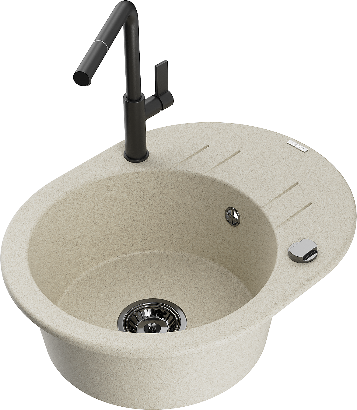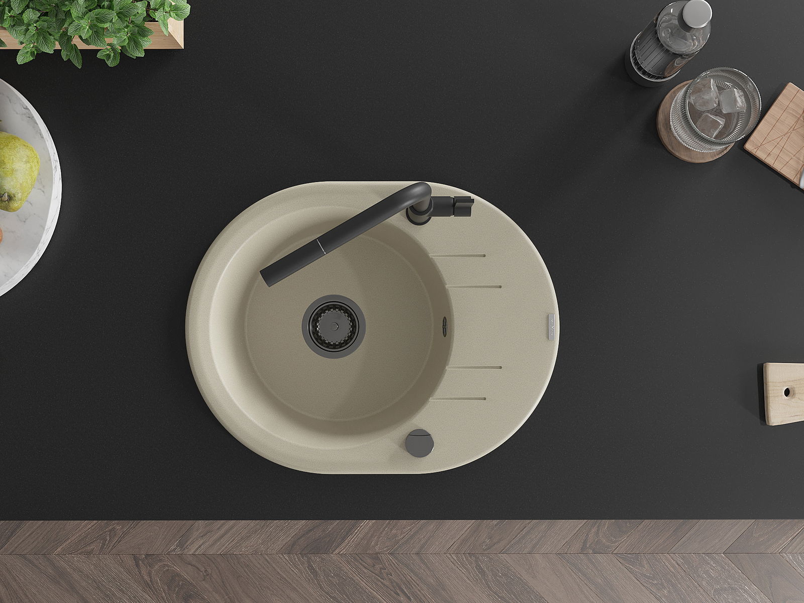 Mexen Kevin évier de cuisine en granit à 1 bac avec égouttoir et robinet de cuisine Flora, beige - 6517-69-670401-70-B